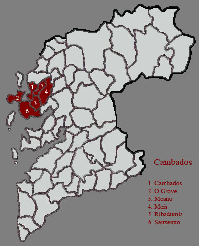 Cambados (Santa Mariña)  Castrelo (Santa Cruz)  Corvillón (San Amedio)  Oubiña (San Vicenzo)  Vilariño (Santo Adrián)